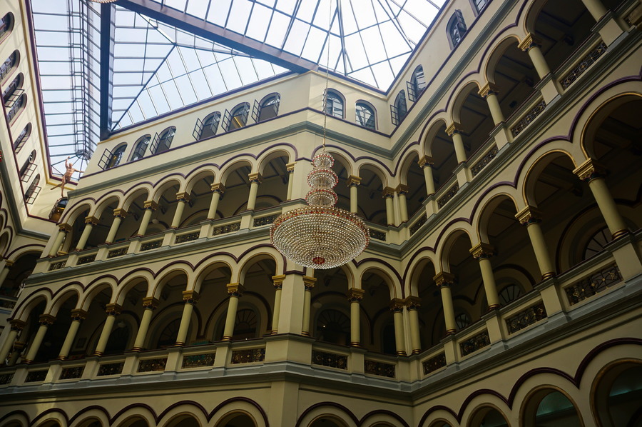 En suivant la rue piétonne Carabobo depuis la Plaza de Cisneros, nous tombons sur ce bâtiment de 1933 un peu austère de l’extérieur. A son inauguration, il comptait des bureaux de poste et de télégraphe, des tribunaux, des cabinets d’avocats ou encore des brigades de l’armée. Il fut laissé à l’abandon durant les années sombres des cartels avant de subir une cure de jouvence en 1993. Il abrite dorénavant un centre commercial dans lequel il faut absolument rentrer, non pas pour les boutiques qui n’ont rien d’extraordinaire, mais pour l’architecture intérieure. Dans les étages supérieurs, se trouvent des galeries d’art. Nous sommes totalement incultes en art donc nous ne pouvons pas vous dire si elles en valent la peine ou pas. Nous avons été plus fascinés par les lustres qui ornent le hall central. Même Dubaï n’a pas des malls aussi stylés!