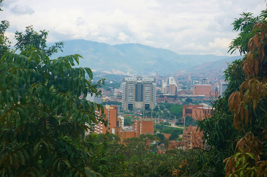Medellín est la deuxième ville de la Colombie. Elle se situe dans une vallée au milieu de la cordillère centrale des Andes à 1500 mètres d’altitude. Donc, techniquement, nous sommes encore en montagne et ne sommes pas si descendus que ça. Pourtant, la différence climatique est notable. Medellín est surnommée la ville du printemps éternel. En vrai, ça veut dire que le temps change toutes les vingt minutes, comme au printemps! Plus sérieusement, c’est vrai que le temps est changeant mais la température reste agréable, autour des 25-26 degrés toute l’année, et ce malgré quelques gros orages le soir.