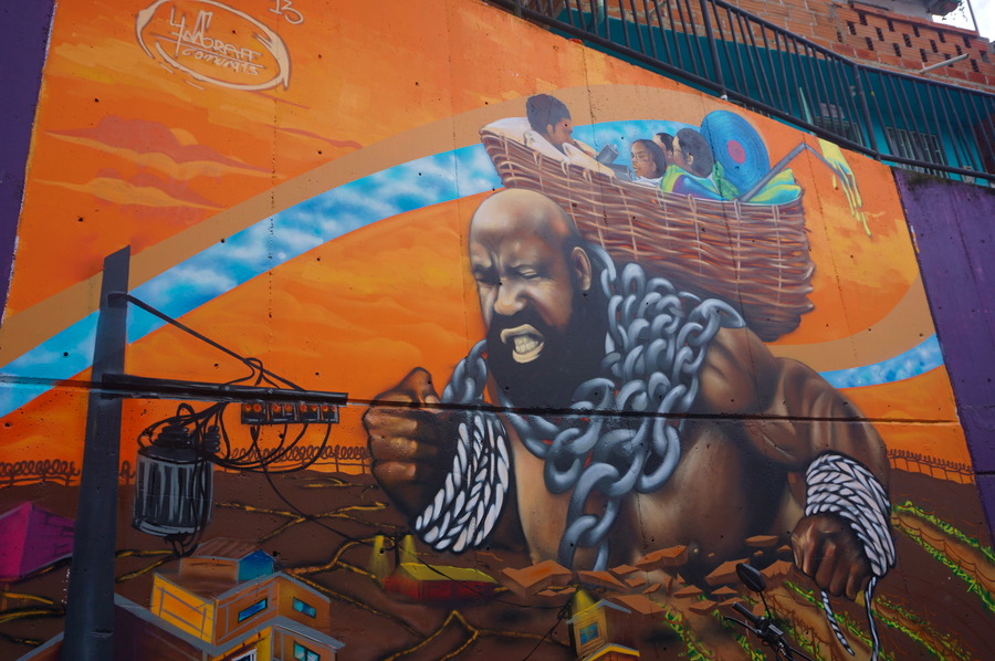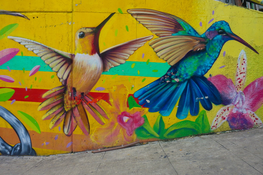 Après la mort de Pablo Escobar, les jeunes du quartier avec l’appui du gouvernement local œuvrèrent pour redynamiser le quartier notamment grâce à de superbes peintures murales. Nous déplorons juste que ces superbes fresques ne soient pas mieux mises en valeurs. Elles servent souvent de parking à scooters ou d’appui pour des stands de vente de souvenirs.