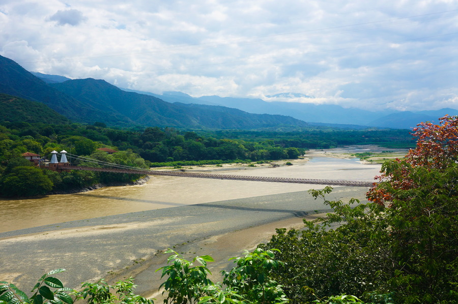 Le paysage depuis le pont sur le Rio Cauca et sa vallée dans la cordillère occidentale des Andes vaut également le détour. Nous aimons ces ambiances tropicales de grands fleuves traversant la forêt. Par contre, il faut faire attention! Il paraît qu’il y a des caïmans dans le coin…