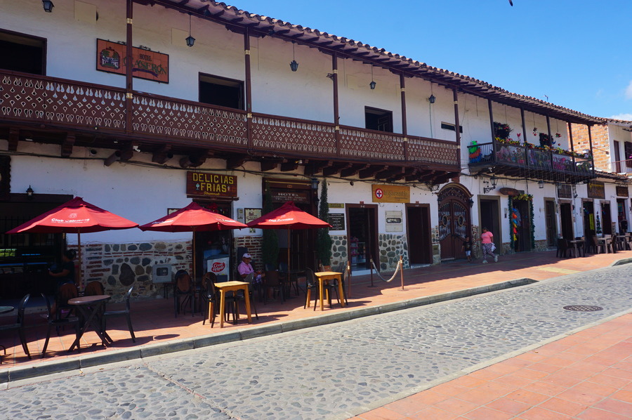 Avec la perte de son statut de capitale régionale, Santa Fe de Antioquia ne s’est pas beaucoup développée depuis le XIXe siècle et a gardé intact son centre colonial, à l’instar d’Antigua au Guatemala qui a une histoire un peu similaire. Le centre historique n’est pas très grand et possède ce fameux plan en damier cher aux Espagnols. Mais pour s’y promener, ce sont les pavés de Granada avec les trottoirs inégaux de Campeche. Rien d’insurmontable avec une bonne paire de baskets mais il faut quand même faire attention à ne pas se fouler la cheville. Et puis, c’est ce qui fait le charme des villes historiques! Les magnifiques maisons coloniales datent du XVIIe siècle et sont, pour la plupart, blanchies à la chaux. Il vaut la peine de jeter un coup d’œil discret par les portes et les fenêtres ouvertes pour admirer les superbes patios à l’intérieur. D’ailleurs, certains cafés ou restaurants valent la peine qu’on s’y attarde plus pour leur intérieur que pour leur gastronomie!
