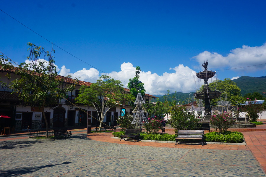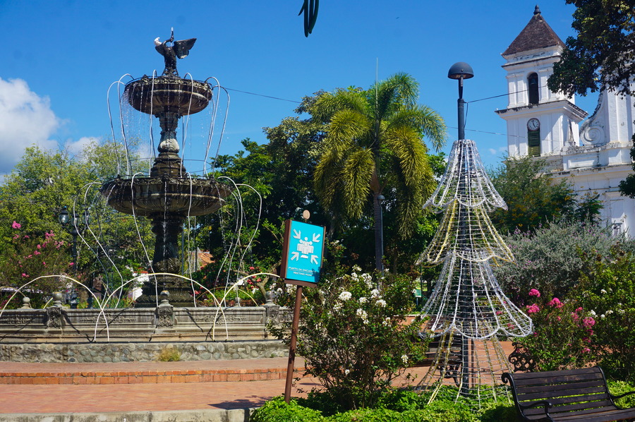 C’est le cœur névralgique de la ville. Elle est bordée par de magnifiques bâtisses coloniales superbement restaurées et par quelques terrasses assez sympas. En son centre, il y a un petit jardin de palmiers, de manguiers, de flamboyants et d’autres espèces tropicales qui nous apportent une ombre bienvenue. La Plaza Mayor porte évidemment le nom du grand seigneur de l’indépendance colombienne : Simón Bolivar.