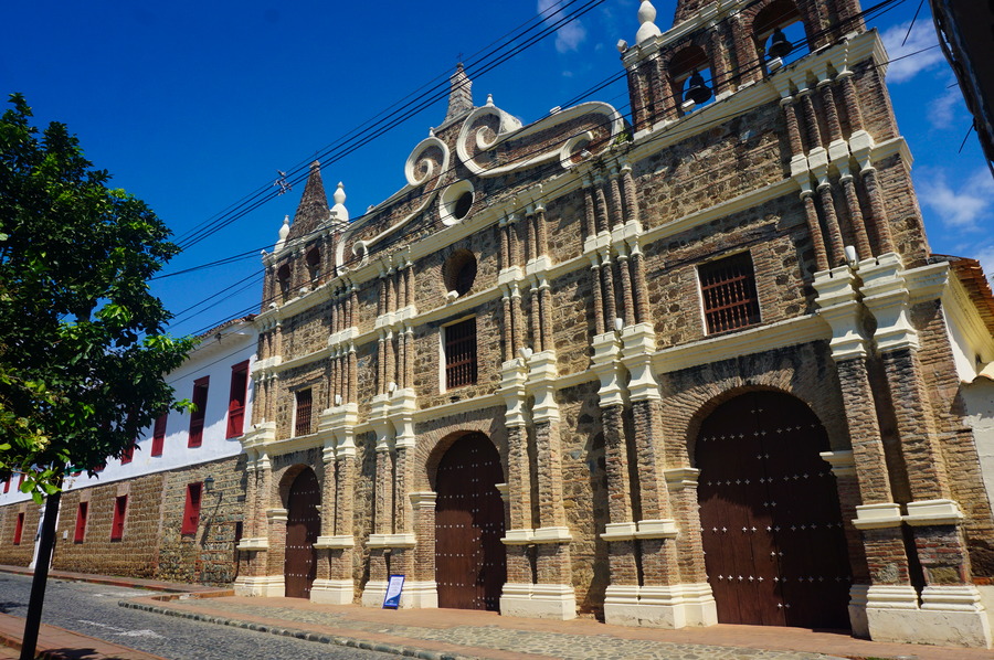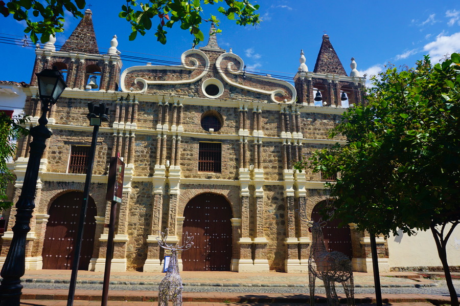Cette magnifique cathédrale baroque et sa façade d’une blancheur immaculée dominent toute la Plaza Mayor Simón Bolivar sur son côté nord-ouest. On doit sa construction à l’architecte valencien Domingo de Petrés qui a également élaboré les plans de la cathédrale de Bogota, la plus importante du pays. Rien que ça! Nous trouvons par contre que l’intérieur est très sobre mais il y fait bon frais. Nous avons vaguement songé à nous mettre à la prière pour profiter de la fraîcheur puis finalement, nous en avons conclu qu’une belle terrasse ombragée ferait beaucoup mieux l’affaire pour des mécréants de notre espèce!