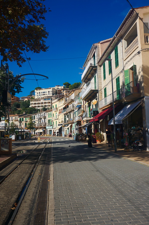 Nous avons quand même voulu voir à quoi ressemblait le village plus haut dans la Sierra. Pour parcourir les trois kilomètres qui séparent Soller du port, nous avons joué les touristes et avons emprunté le tram historique. (10€ par personne, par trajet) La ligne a été inaugurée en 1913. Le but était de prolonger la ligne de train Palma-Soller jusqu’au port mais il y avait le problème de la traversée du village dont les rues sont super étroites. Voilà pourquoi on a opté pour le tram à l’époque. Aujourd’hui, la vocation est purement touristique mais le matériel roulant est d’époque avec sa lenteur et ses banquettes en bois. Il y a juste les réviseurs qui viennent nous encaisser le prix du billet avec des appareils à cartes de crédit super modernes qui cassent quand même un peu l’ambiance! Par contre, passer au milieu des terrasses des restaurants de la place du village est un peu surréaliste!