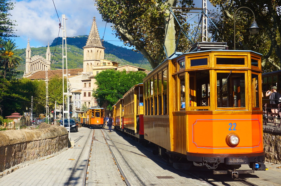 Le port de Soller se trouve dans une baie quasi fermée au pied des magnifiques montagnes de la Serra de Tramuntana. Le village se développa à partir du XVIe siècle car, avec la baie, c’était plus facile de se défendre des pirates. Aujourd’hui, le port de pêche s’est plutôt transformé en marina de luxe pour yachts et l’industrie touristique y bat son plein mais il faut quand même reconnaître que l’environnement est incroyable!
