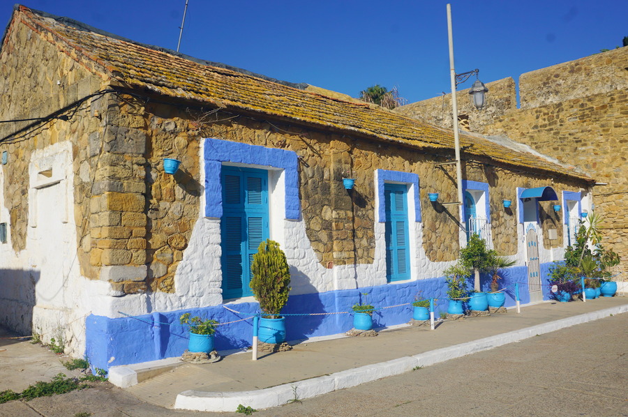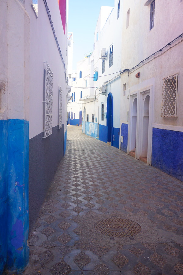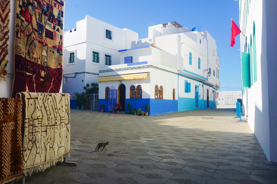 L’intérieur de la médina possède une ambiance plus arabisante avec ses maisons blanches et bleues et ses portes en forme de serrure qu’on retrouve dans beaucoup de villes côtières marocaines. Après la dynamique Tanger, Assilah paraît presque endormie en comparaison et l’heure de la sieste semble encore plus sacrée qu’au sud de l’Espagne! Même les nombreux chats somnolent paresseusement sous le soleil d’automne en attendant le retour des pêcheurs afin d’aller essayer de choper un ou deux poissons pour leur festin du soir. Ceci s’explique en partie parce que nous sommes en novembre et que c’est la basse saison. Il paraît qu’en été, Assilah se transforme en station balnéaire assez animée.