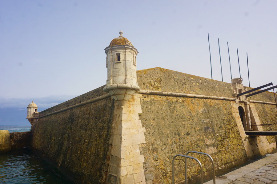 Quand on sort de la vieille ville côté mer, juste à côté du port, se dresse le fort de Ponta da Bandeira. Construit vers 1690 et d’une remarquable architecture militaire, c’est le fort le mieux conservé d’Algarve. Son but était de protéger la ville des corsaires et des pirates qui sévissaient dans la région. Même Francis Drake himself, le célèbre corsaire anglais, s’y cassa les dents. Ce qui nous a frappé, c’est la ressemblance avec les forts espagnols de la côte, comme ceux de Cádiz ou ceux des anciennes colonies comme Portobelo ou Cartagena.