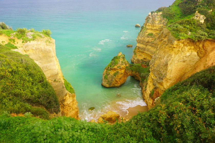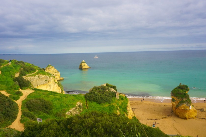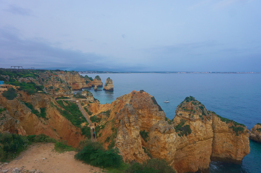 Si la marée est haute, pas de panique! Il y a un chemin sur les rochers accessible depuis chaque plage par un escalier. Il s’appelle Ponta da Piedade, du nom de la dernière plage qu’il dessert et on nous a dit que ça venait d’ouvrir. C’est vrai que les passerelles en bois sentent encore le neuf! C’est super facile d’accès et c’est bien indiqué. Evidemment, le paysage vu depuis en haut est à couper le souffle!