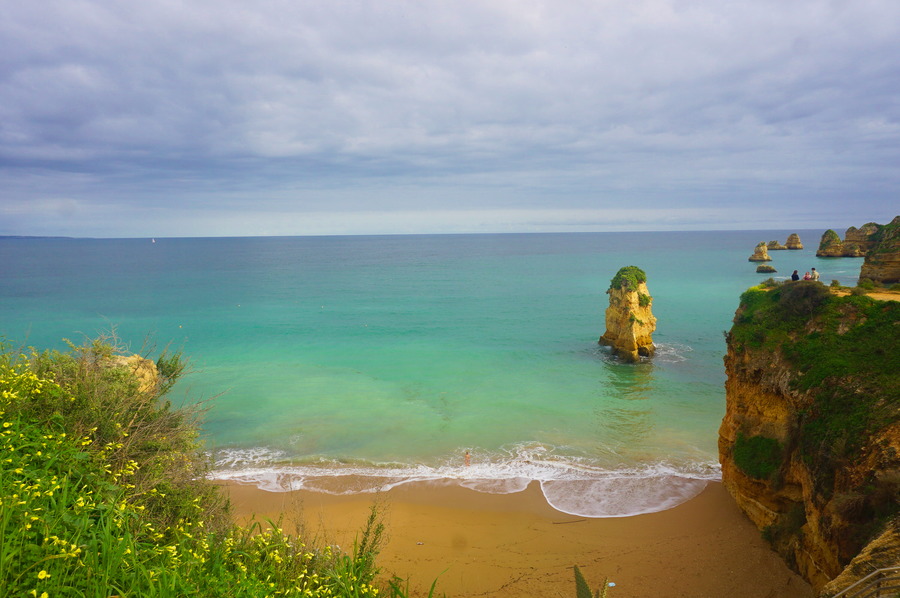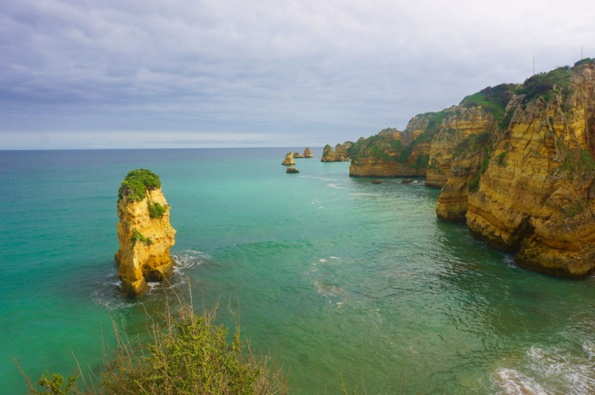 Venons-en au pourquoi de notre séjour en Algarve! La Playa! Et les pasteis de nata aussi, avouons-le! Nous y avons été en mars et pendant une tempête. Nous y avons trouvé un océan un peu agitée et une eau bien trop froide. Quoique, il y avait quelques téméraires qui ont été faire trempette et qui ont l’air d’avoir apprécié. Par contre, malgré le manque de soleil, nous avons quand même vu une couleur de l’eau incroyable!