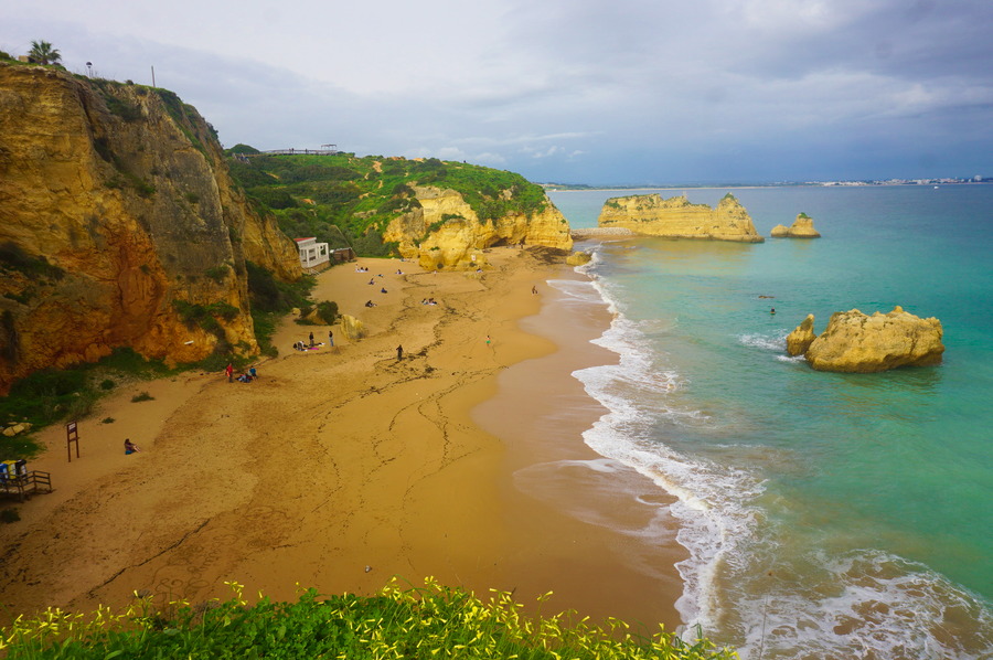 Lagos compte en fait une dizaine de plages, toutes plus belles les unes des autres. Elles sont surplombées par de magnifiques falaises de calcaires façonnée par l’érosion qui nous donnent un paysage spectaculaire. Certaines de ces plages forment presque une baie fermée par les rochers ce qui les protège bien du vent, qui peut souffler très fort même hors tempêtes. Lagos ne se trouve qu’à une petite trentaine de kilomètres du cap de São Vicente, la pointe la plus au sud-est de l’Europe continental donc elle subit de plein fouet les courants venus tout droit de l’Atlantique.