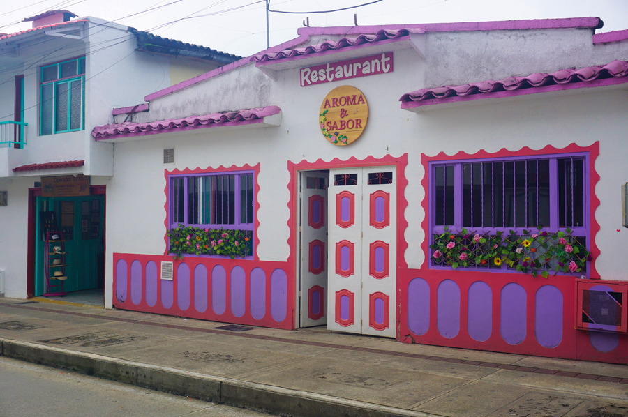 Le village de Palomino n’a rien de traditionnel et a été monté de toutes pièces pour les touristes. Ce sont surtout les surfeurs qui sont attirés par les belles vagues de la mer des Caraïbes. Nous ne pratiquons pas le surf mais nous aimons beaucoup la mentalité des adeptes de ce sport. Ici, pas de grands hôtels, juste quelques bâtisses composées de toits de chaume sur des poutres en bambou et des routes non asphaltées. Avec les vagues, la mer n’est pas du tout propice à la baignade mais la plage reste belle avec sa végétation luxuriante et les premiers sommets de la Sierra Nevada.