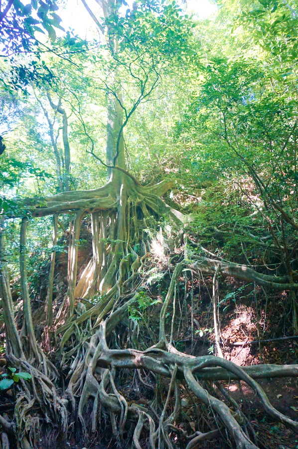 La montée est raide, le chemin un peu scabreux et parfois à pic, il fait une chaleur humide étouffante et il y a des singes qui nous narguent en nous montrant leurs fesses! Mais le jeu en vaut la chandelle avec cette vue incroyable sur l’océan et sur la côte découpée couverte de végétation tropicale. L’eau est tellement claire que nous pouvons apercevoir les cailloux dans la mer depuis en haut!