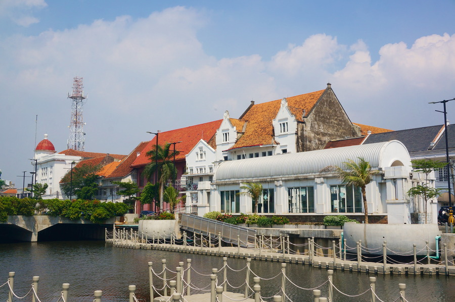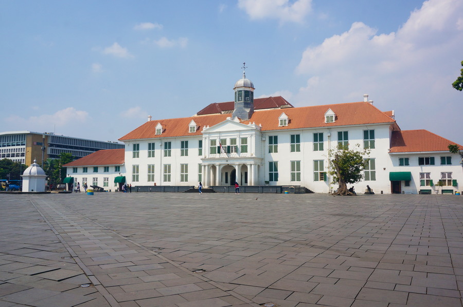 Entre 1800 et 1945, l’Indonésie était une colonie néerlandaise appelée Indes Orientales Néerlandaises et la capitale était Batavia, aujourd’hui Jakarta. Il en subsiste aujourd’hui tout un quartier avec des bâtiments coloniaux joliment conservés dont la maison du gouverneur. Le quartier est majoritairement piéton, une rareté en Indonésie, et il y a un un canal pour nous rappeler Amsterdam et les autres villes à canaux des Pays-Bas. Il y a même des vélos pour faire encore plus hollandais! Heureusement, quand ils sont partis, les Hollandais n’ont pas laissé leur gastronomie, ou alors, les Indonésiens ont préféré garder leur propre cuisine, bien meilleure! Ce que nous comprenons aisément!