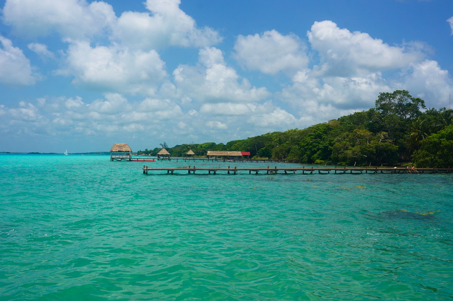 Nous avons eu un gros coup de cœur pour Bacalar. C’est très tranquille, pas submergé par le tourisme de masse et c’est très vert également. Et puis il y a la lagune! Cette étendue d’eau entourée de mangroves qui déploie une multitude de bleus (sept il paraît, plus ou moins selon la lumière). C’est le bon plan pour échapper aux Gringos de la côte et aux sargasses à la saison chaude.