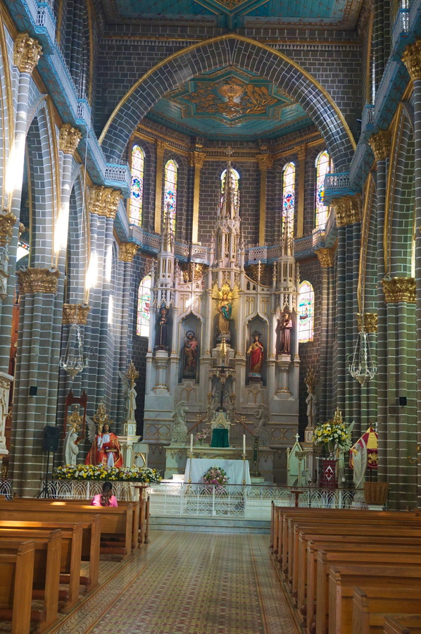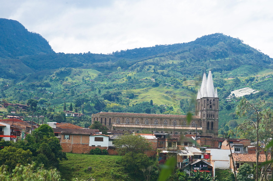 Impossible de la louper cette basilique vu qu’elle doit faire à peu près la moitié de la superficie du village! Elle domine le Parque Principal tout aussi joli mais en partie inaccessible à cause de travaux. Dommage, parce que c’est vraiment le cœur névralgique de Jardín. Ce monstre néogothique date de 1932 et est l’œuvre d’un architecte italien Giovanni Buscaglione. Ses briques grisâtres, sa hauteur et ses toits en flèche sur les clochers contrastent joliment avec les petites maisons colorées aux alentours. Fait assez rare en Colombie, la basilique est ouverte et il est possible d’y découvrir l’intérieur qui est encore plus impressionnant que l’extérieur.