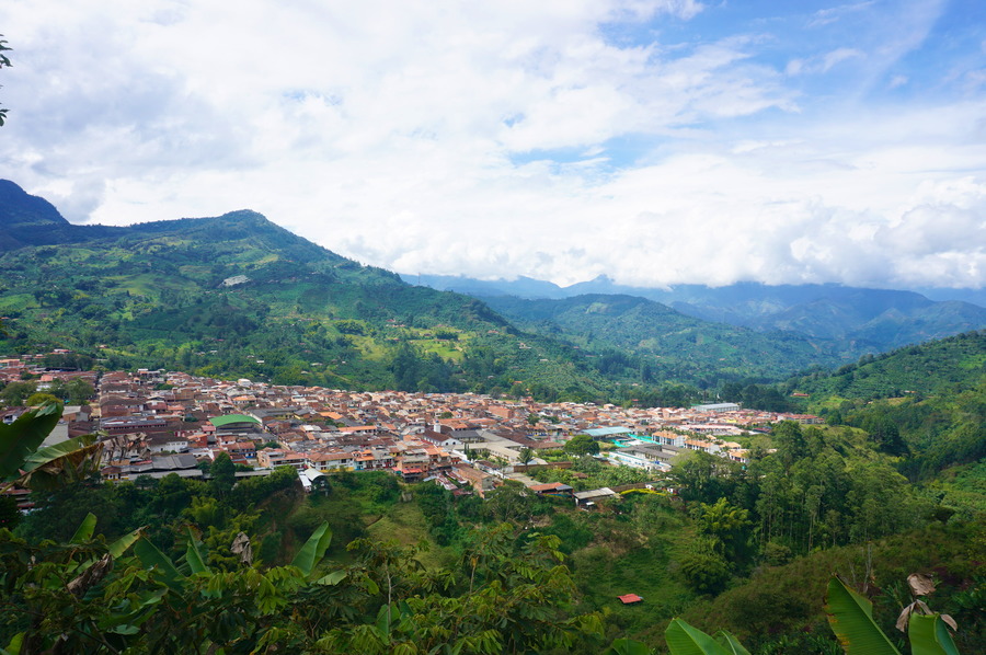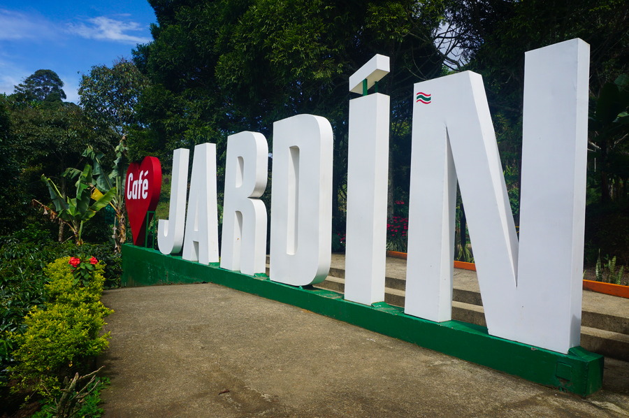 Jardín est un village perché à 1750 mètres d’altitude dans la cordillère occidentale des Andes. Il fait partie de l’Eje Cafetero de Antioquia du nom du département auquel il appartient. Il a été fondé en 1860 par des colons de Medellín, les mêmes qui partirent plus tard fonder les villages du Quindio autour de Salento. D’ailleurs, les petites maisons colorées toutes mignonnes avec leurs magnifiques balcons en bois sont quasiment identiques. Nous avons eu une chance inouïe car nous sommes arrivés avec le soleil, ce qui fait ressortir encore plus les façades colorées. La météo n’avait, jusqu’ici, pas été aussi clémente avec nous, surtout en montagne!