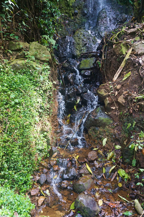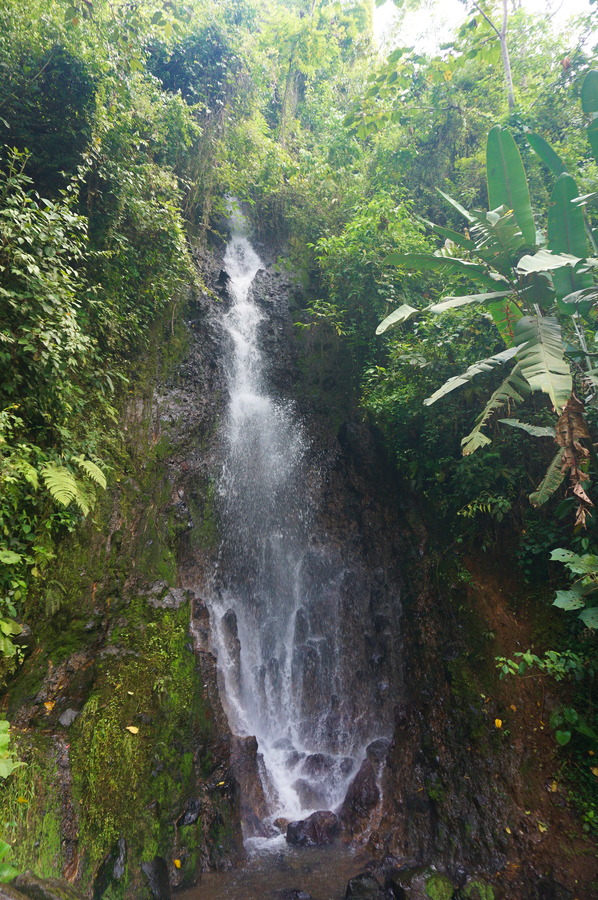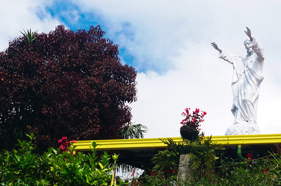 Depuis le café Jardín, nous entamons gentiment notre descente sur le village. Nous nous arrêtons vers la statue du Cristo Rei mais l’accès y était fermé durant notre passage. De toute façon, c’est la vue qui est la plus impressionnante. De là, il y a un petit chemin qui descend à travers les bananiers. C’est super joli mais il y a un peu de boue et comme c’est assez raide, ça devient assez glissant.