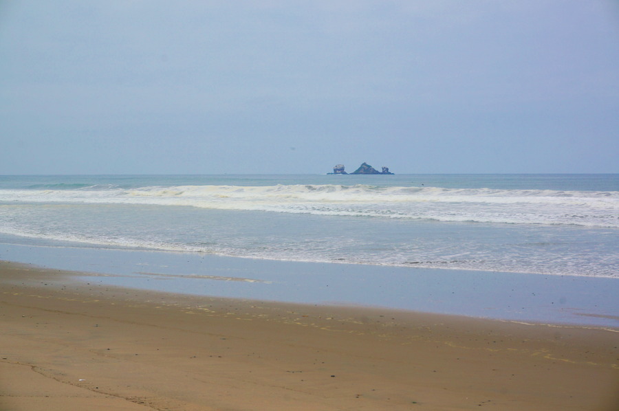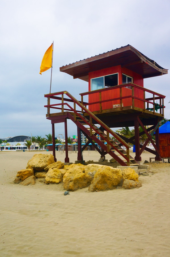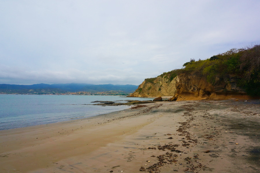 Si la ville n’est pas extraordinaire, il faut reconnaître que la plage est plutôt sympa et la mer propice à la baignade. Ça nous change pas mal des courants forts et des grosses vagues de Puerto Lopez! Par contre, nous sommes en début de saison de garúa, une brume humide venant du Pacifique, et nos photos sont un peu tristounettes du coup. Sorry!