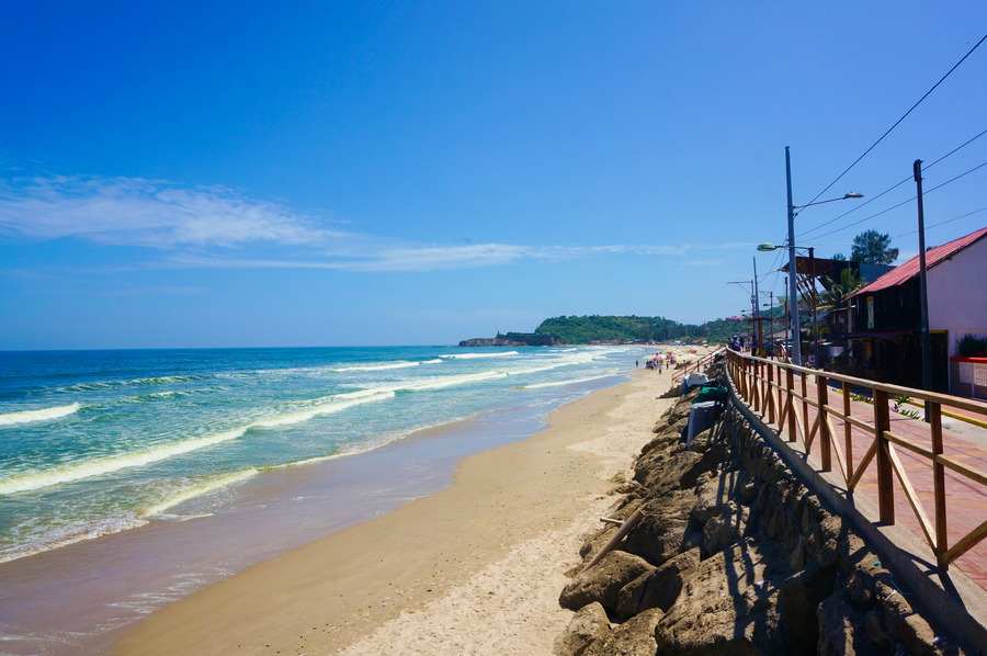 Notre hostal se situe à trente kilomètres au nord de la station balnéaire de Montañita . Afin de ne pas mourir idiot, nous y sommes allés faire un tour. Il n’y a plus rien de l’ancien village de pêcheurs qui vivait au rythme des marées. C’est une grande station balnéaire avec une multitude de bars pour occidentaux. Heureusement, ce n’est encore pas trop bétonné. Les maisons sont plutôt construites en bois avec un toit de chaume. L’ambiance reste encore assez bonne enfant puisque ce sont surtout des surfeurs qui fréquente le lieu. La plage est magnifique même si les courants sont un peu forts pour la baignade.