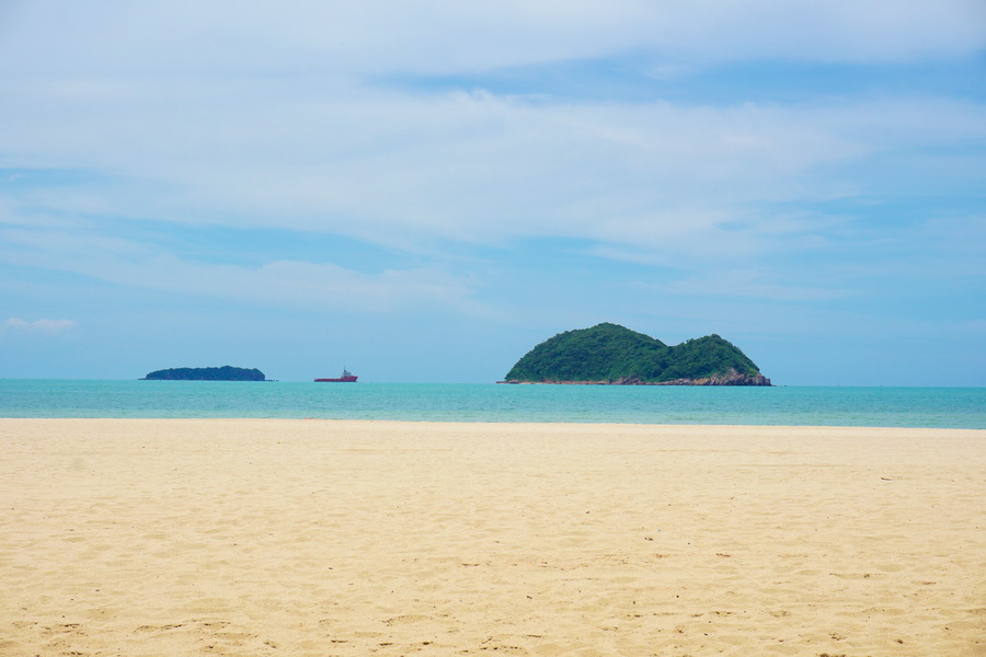 Songkhla ne se contente pas d’être une ville sympa, elle se targue de posséder une plage de rêve. Sable blanc, eaux turquoises et chaudes, îles karstiques, il est difficile de croire que nous sommes en pleine ville! C’est un véritable bol d’air qui s’étend sur plusieurs kilomètres. Lors de notre passage, le soleil cognait vraiment fort et il était impossible de rester sur le sable sans se brûler les pieds! Nous ne nous y sommes pas attardés de peur de prendre une insolation et des gros coups de soleil. Malgré cela, ça restera quand même une plage paradisiaque.