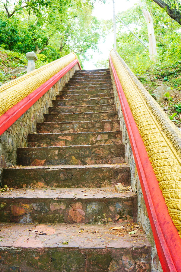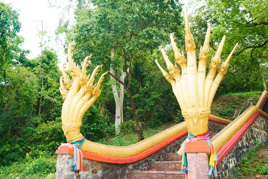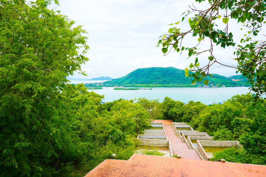 Au centre de l’île se dresse une colline avec une vue à 360 degrés sur les alentours. Elle se mérite car après une bonne grimpette pour arriver au centre névralgique de Koh Larn, il faut encore gravir 267 marches pour rejoindre le sommet. Mais une fois arrivés, la récompense est à la hauteur de l’effort!