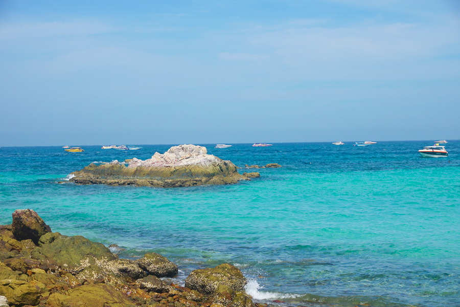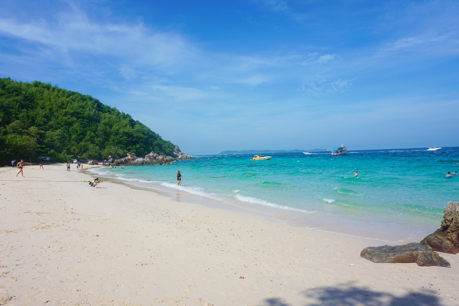 On y accède par un petit chemin forestier mais à l’arrivée, c’est la douche froide! Toute la population touristique de Pattaya s’y est donné rendez-vous, la plage étant accessible directement par bateau depuis la station balnéaire. Il y a tellement de monde que les vendeurs n’ont pas le temps de jouer les rabatteurs! Mais le pire, ce sont les dizaines de hors-bords et de jet-skis qui gâchent le paysage. Ils font un tel boucan qu’on se croirait vraiment sur un circuit de Formule 1! C’est dommage car la plage est vraiment jolie…