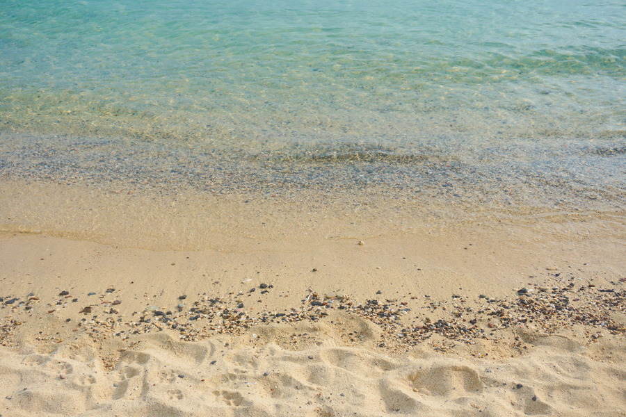 Il n’y a qu’une seule plage de sable sur l’île car elle le relief est très vallonné et les rochers se jettent souvent directement dans la mer. Elle se mérite cette plage! Il faut marcher trois kilomètres depuis le village pour y accéder en franchissant un col perché à une hauteur honorable de 196 mètres d’altitude! Mais la végétation que nous traversons est magnifique et le paysage vaut le coup d’œil.