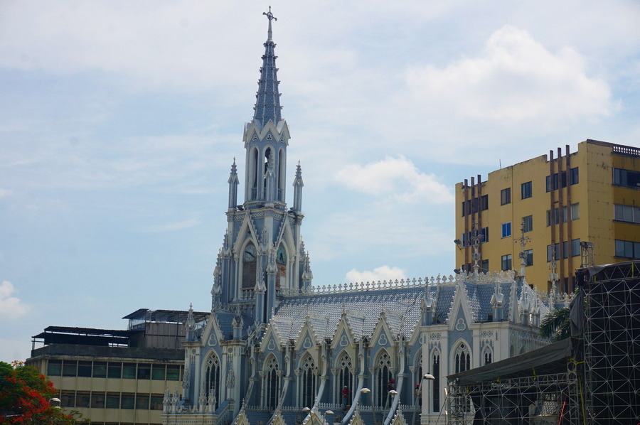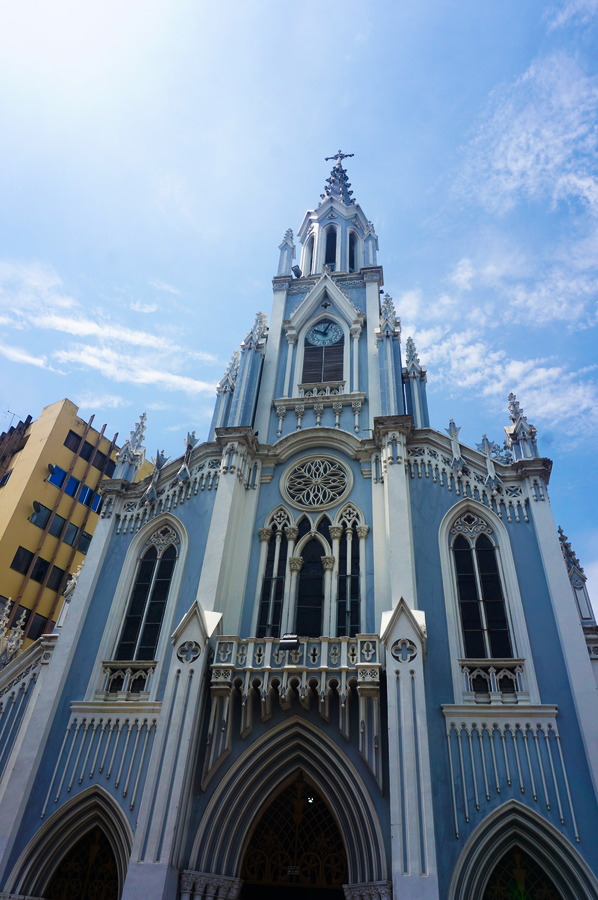 Cette église en elle-même est un joli monument néo-gothique construit en 1942 sur un ancien ermitage espagnol du XVIIe siècle. Elle a une position privilégiée sur le Rio Cauca qui traverse la ville et qui est le deuxième fleuve du pays. Elle se situe dans le Parque Simon Bolivar, une jolie place tranquille avec beaucoup d’arbres et c’est très agréable pour fuir le trafic et la pollution. Mais avec la préparation des stands pour la Cop16 Biodiversité, le parc était inaccessible.