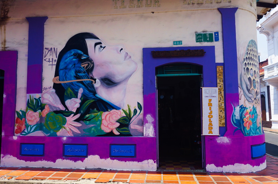 Là nous avons vraiment l’impression d’être arrivés en Colombie avec ces superbes peintures murales pleines de couleur! Elles n’ont rien à envier à d’autres villes réputée pour leur art de rue comme Georgetown ou Malacca! Les thèmes sont plutôt portés sur la faune et la flore locales ou sur les danseurs de salsa. Dans les deux cas, c’est juste magnifique!