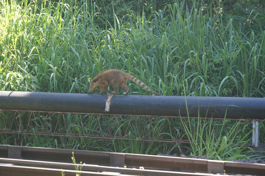 Nous nous enfonçons un peu dans la jungle car notre but est de découvrir la canopée. Mais un bon gros orage a passé par là, des arbres sont tombés et la passerelle est impraticable. Tant pis, nous observerons la faune depuis en bas! Elle ne nous laisse pas sur notre faim : multitudes d’oiseaux et de papillons, insectes souvent non identifiés, varans dont certains dévorent des crabes plus grands qu’eux, toutes sortes de lézards ainsi que des singes qui profitent de l’absence d’humains pour s’amuser avec ce qui reste de la passerelle. Ici, la végétation est bien plus dense que sur le littoral et, comme il n’y a pas le bruit des vagues à proximité, nous redécouvrons les sons de la forêt.
