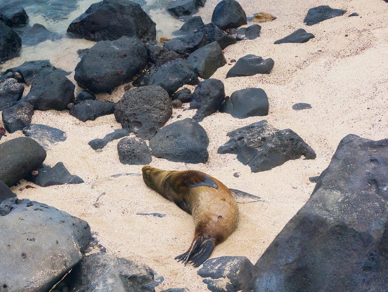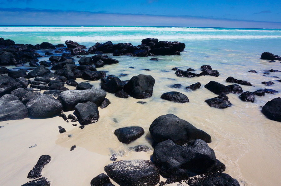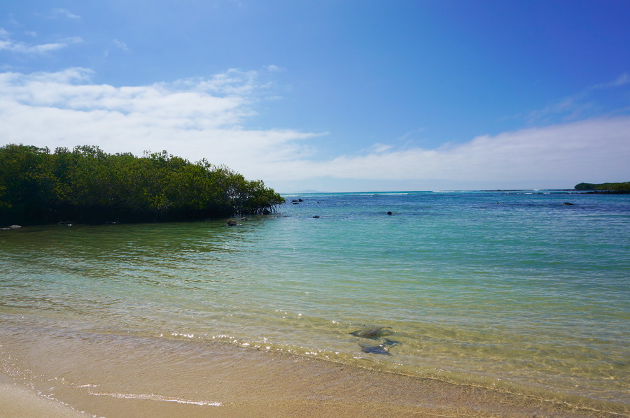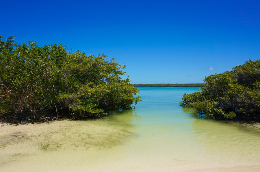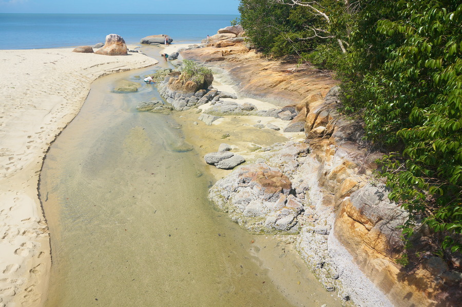Après plus de deux heures de marche dans la jungle, juste après le lac méromictique, voici notre récompense : une superbe plage sauvage de sable fin et de mer turquoise! Le paradis! Mais qu’on ne s’y trompe pas! La baignade est loin d’être aussi idyllique : il y a de forts courants sous marins et des méduses venimeuses envahissent les lieux! Nous n’avons même pas essayé d’y tremper un orteil même si ce n’était pas l’envie qui nous manquait. En saison, ce qui n’est pas le cas ici, il est possible d’apercevoir des tortues qui viennent pondre leurs œufs sur la plage.