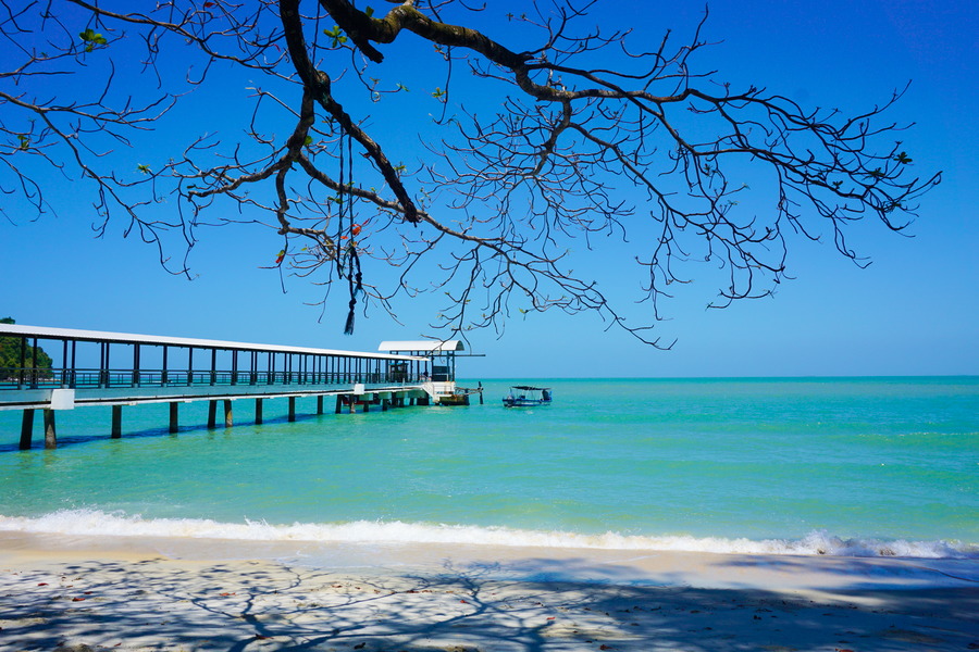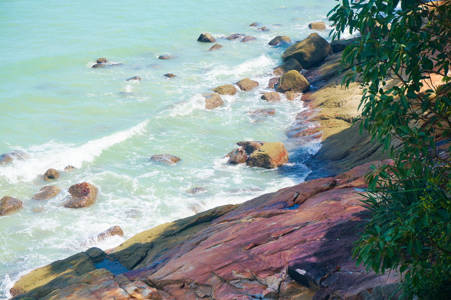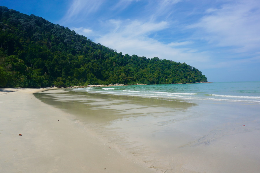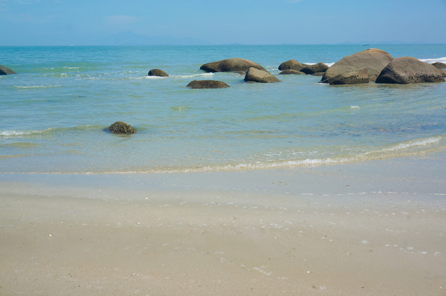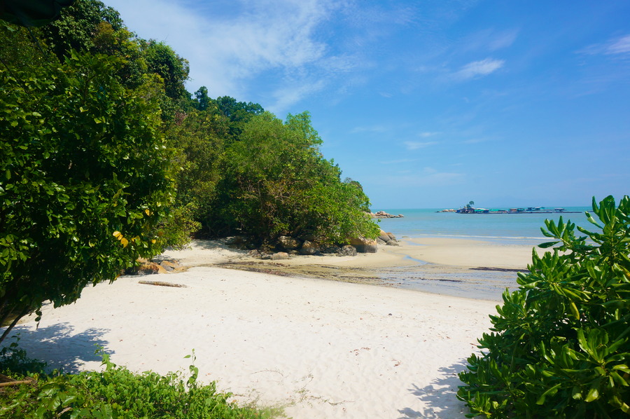 Au début, nous sommes un peu déçus. Ça ne ressemble pas vraiment à un parc national mais plutôt à une promenade de santé avec un chemin pavé pour touristes chinois en tongs avec des ventilateurs portatifs. Ce n’est pas bien de se moquer mais les Chinois se baladent vraiment comme ça! Nous en prenons quand même plein les yeux en longeant la superbe plage tropicale qui s’étire le long du chemin.