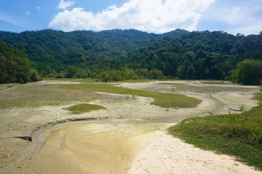 Le terme méromictique signifie pour un lac que le mélange des eaux de surface avec les eaux profondes se produit moins d’une fois par an. Là, en saison sèche, le lac est presque totalement asséché, juste un filet d’eau coule gentiment jusqu’à la mer. Il est donc difficile pour l’eau de se mélanger! Mais c’est totalement normal, le lac est dit saisonnier et est alimenté principalement par la mousson. Il n’y a que trois lacs de ce genre en Asie, les deux autres se trouvent dans les Iles Sulawesi, en Indonésie ainsi qu’au Bangladesh.