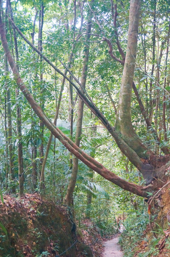 A dix minutes de bus de Batu Ferringhi, ou une demi-heure depuis le centre de Georgetown, se trouve Teluk Bahang. C’est juste un petit village de pêcheurs où le temps s’est un peu arrêté mais c’est le point d’entrée du parc national. Avec ses 25 hectares, le Penang National Park est le plus petit parc national de Malaisie mais ça ne l’empêche pas d’être incroyable. A l’entrée, c’est l’organisation à l’américaine (ce n’est pas un reproche, bien au contraire!) avec des rangers qui t’obligent à t’enregistrer pour des raisons de sécurité. Malgré sa taille modeste, le parc abrite plus de 143 espèces d’animaux ainsi que 417 espèces de plantes dont certaines sont endémiques de l’île.