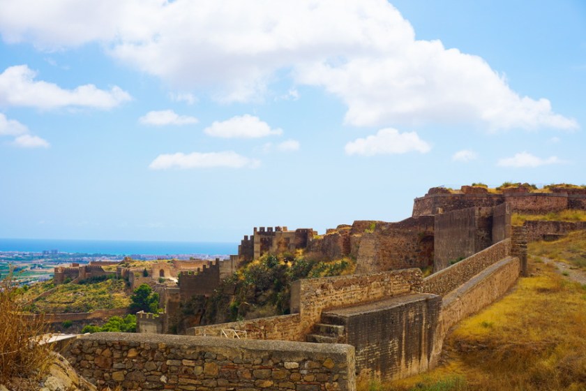 Le château de Sagunto est en fait une immense forteresse qui s’étend sur deux collines surplombant la ville et toute la plaine aux alentours. Il a été bâti au Xe siècle sur le site du forum romain et sur l’ancien village du peuple ibère. Les murs extérieurs encore debout datent de l’époque musulmane. A l’intérieur, ce ne sont plus que des ruines mais on peut y découvrir le passage des différents peuples (Ibères, Romains, Arabes, Wisigoths,…) qui ont habité le coin à travers les siècles. La ville a été prise dans tous les conflits qui ont ravagé la péninsule ibérique à l’époque médiévale et le château a pas mal morflé à chacun d’eux, d’où un état de conservation assez mauvais.