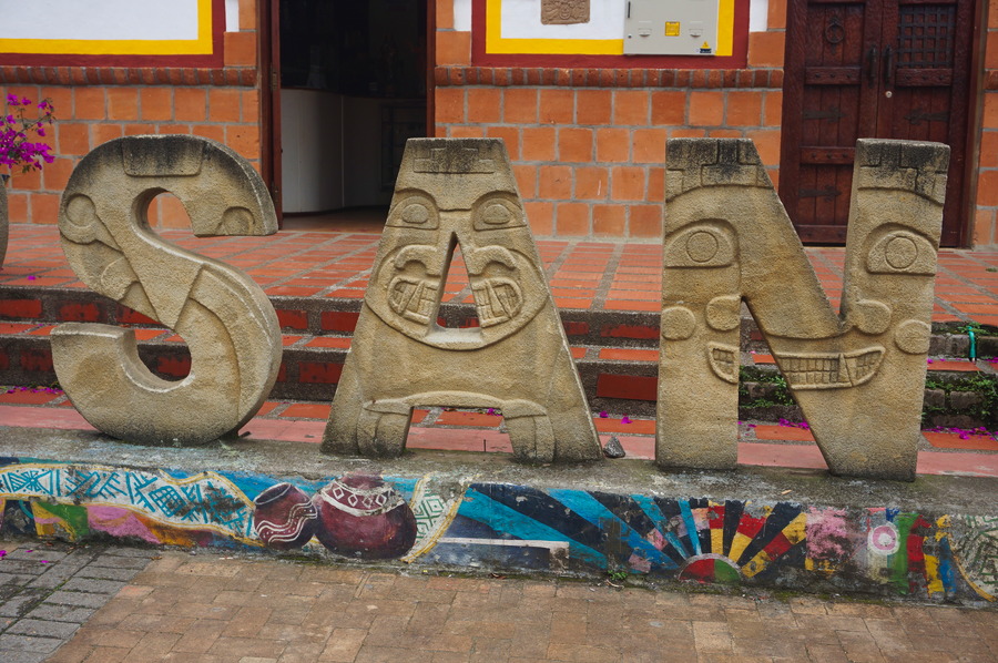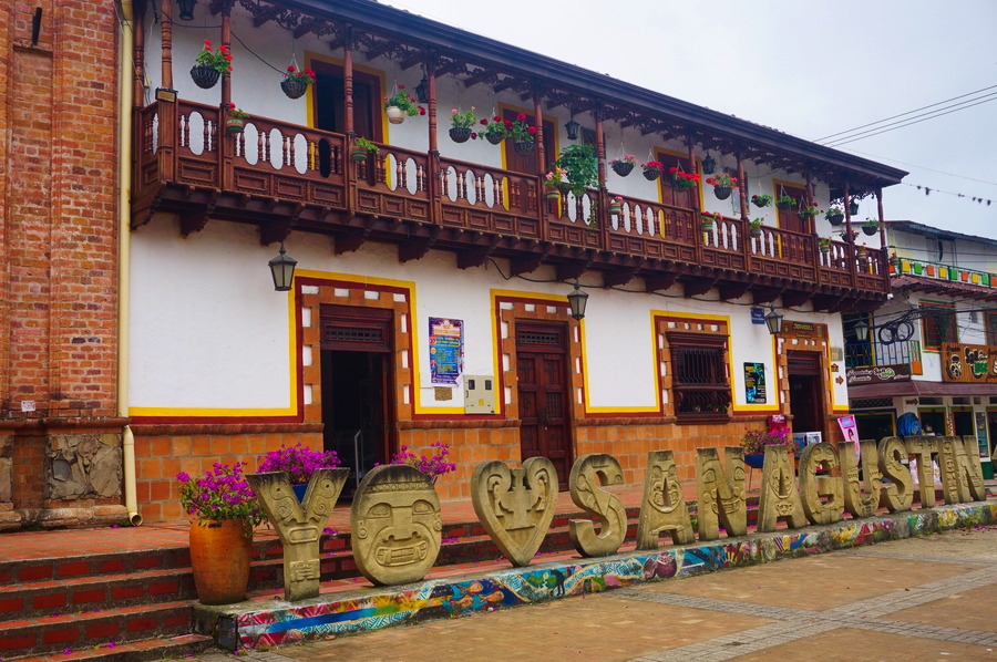 Comme toute ville latino-américaine qui se respecte, San Agustín possède son « Parque Central » et sa cathédrale. Mention spéciale pour la maison du curé qui jouxte l’église et qui, avec ses balcons en bois, est juste superbe! Il y a, évidemment, les fameuses lettres où les touristes viennent se prendre en photo. En plus, le nom est trop long! Toutes les lettres ne rentrent pas sur une seule photo! Par contre, elle ont été dessinées sur le modèle précolombien de la région et c’est plutôt original et joli.