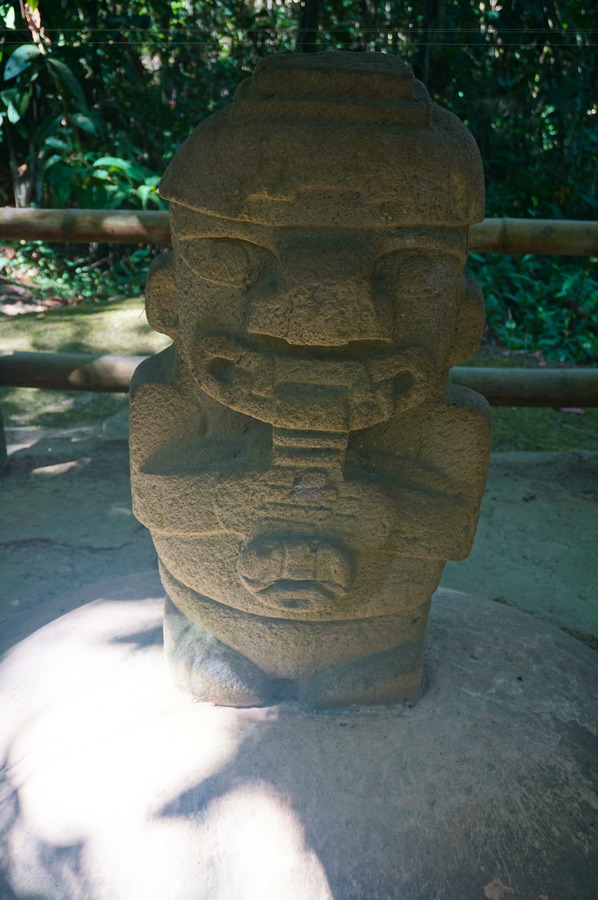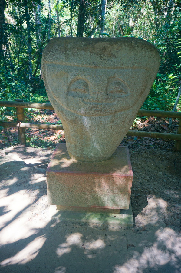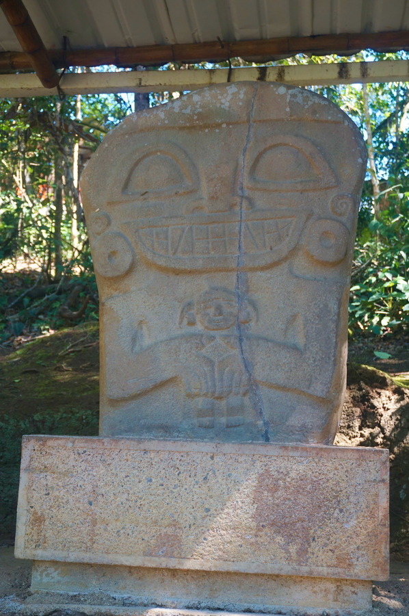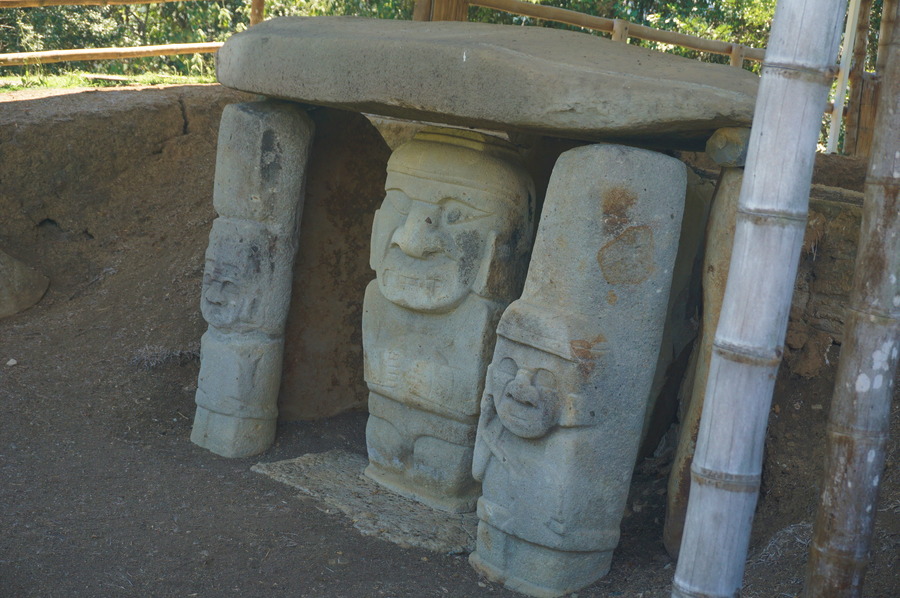 C’est le gros highlight de San Agustín! Le parc archéologique est en fait une énorme nécropole, une des plus grande de l’Amérique précolombienne, datant de l’époque archaïque (3000 à 1000 avant notre ère) jusqu’à l’époque dite récente (du IXe siècle à la conquête espagnole). Il se trouve à trois kilomètres à l’ouest du centre de San Agustín. Il est possible d’y aller à pied, c’est facile, au bord de la route et ça ne grimpe pas trop. Si vous avez de la chance, comme ce fut notre cas, vous pouvez choper le collectivo qui vous mènera à l’entrée du site pour la modique somme de 2000 COP (0,45€ ou 0,40 CHF).