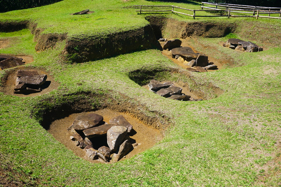 Une mesita c’est une clairière. Il y en a trois dans le parc. Seuls les puissants et les nobles avaient le droit d’être enterrés dans ces mesitas. Là, on se rend bien plus compte du caractère funéraire du lieu avec des dizaines de tombes qui ont été excavées. Certaines possèdent encore leurs statues qui sont beaucoup plus grandes que dans le bosque. On voit qu’on avait affaire à de gens importants par ici!