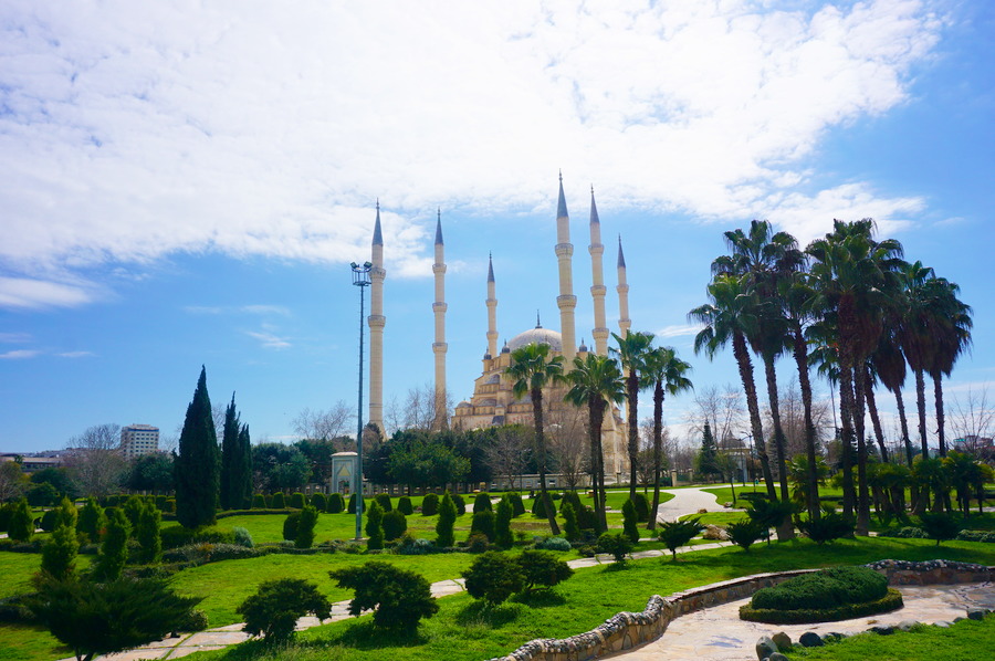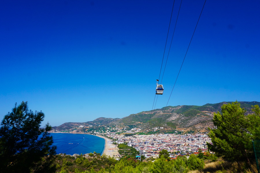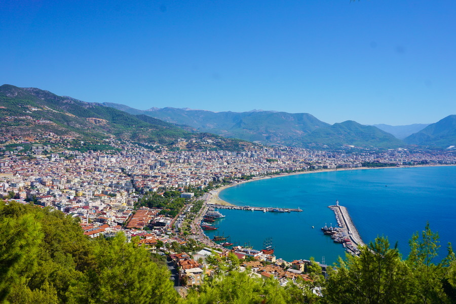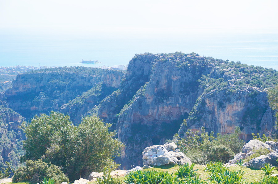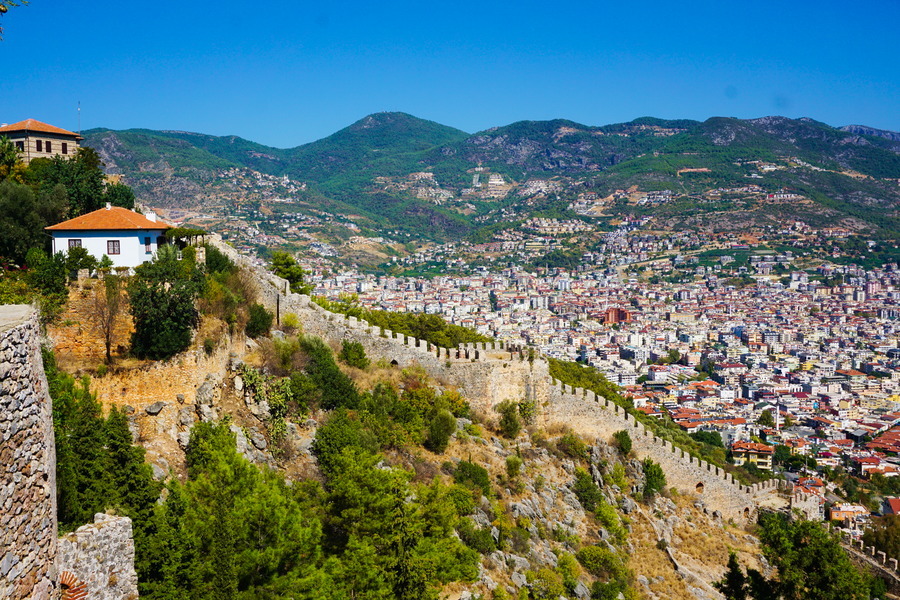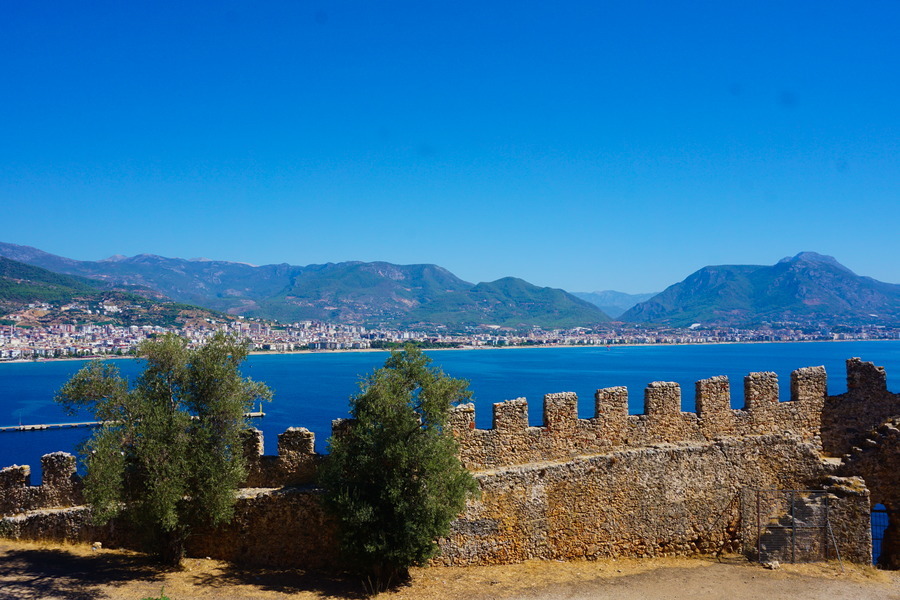 Si nous avons fait l’effort de grimper jusqu’au sommet, c’est évidemment également pour la vue! Nous pouvons jouir d’un panorama à 360 degrés sur les montagnes d’Emir, le centre historique, la ville moderne et les fameux hauts plateaux qui nous emmènent déjà en Anatolie Centrale. Il souffle un fort vent du sud-ouest nous amenant un peu de calima, l’atmosphère n’est donc pas très nette mais ça n’enlève rien à la beauté du panorama!