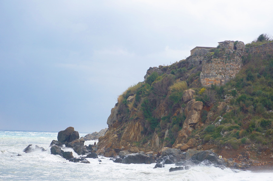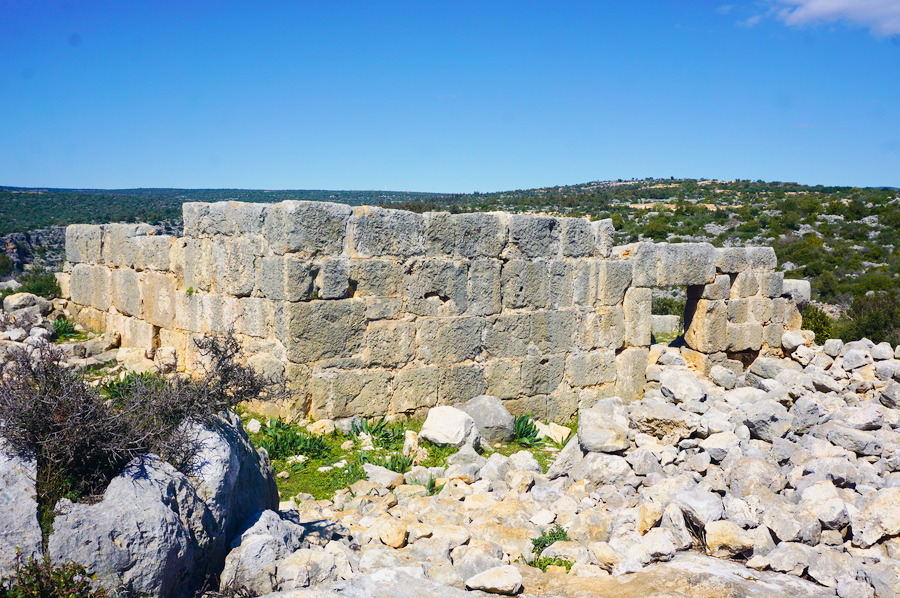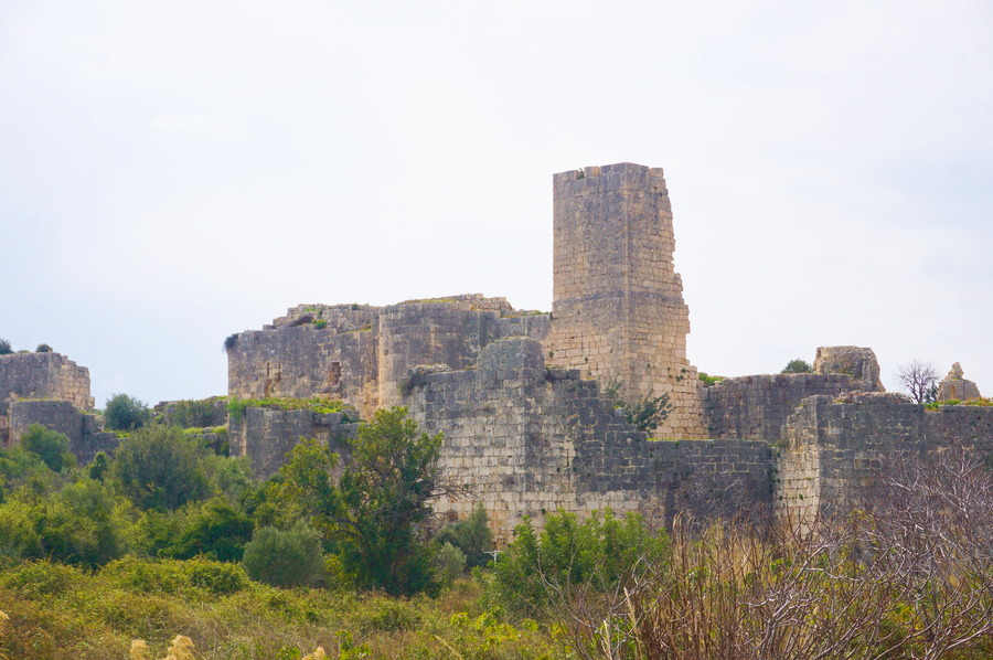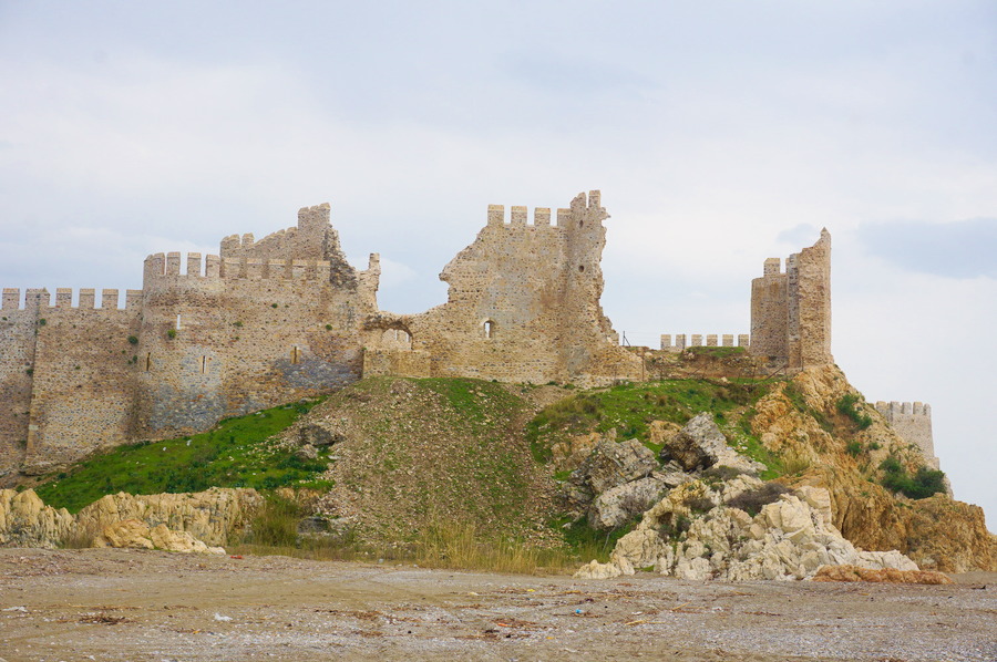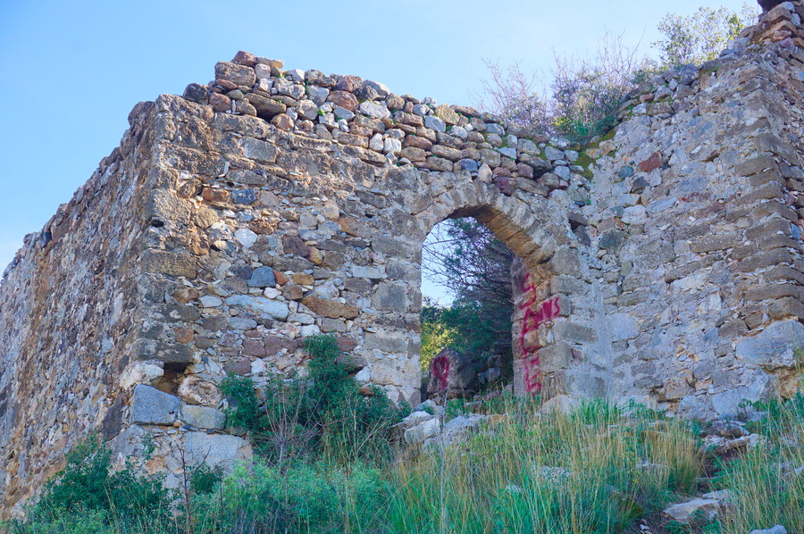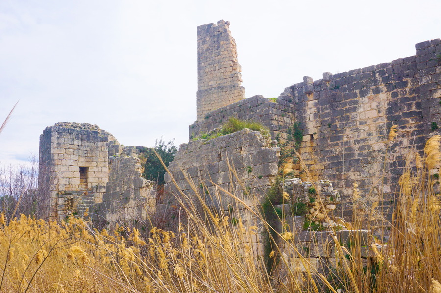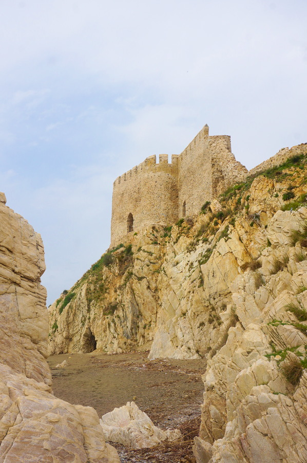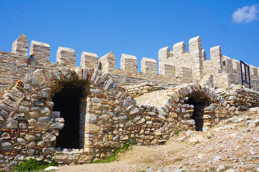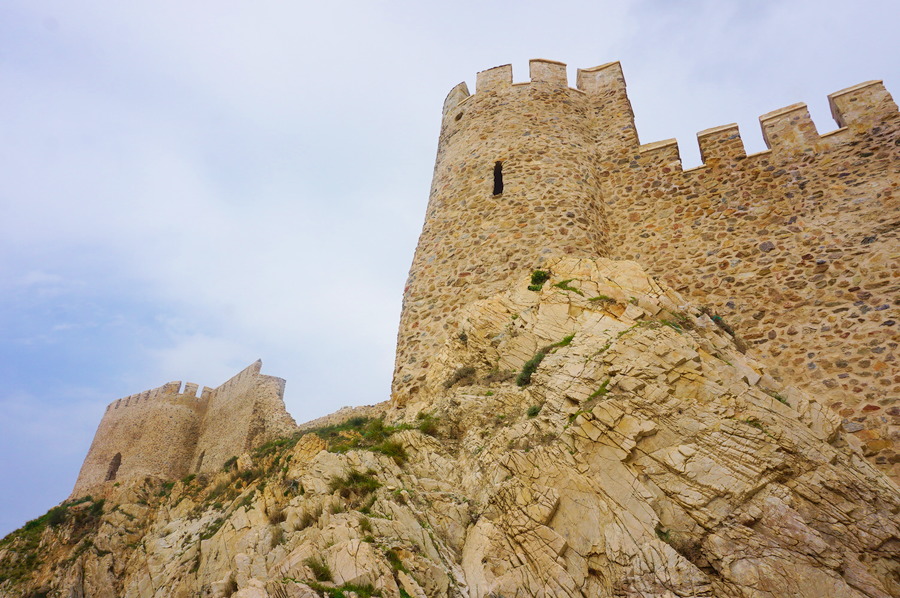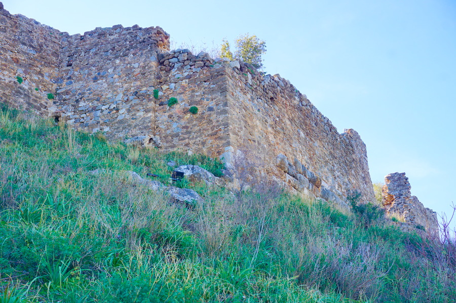 Tout ce qu’il reste du château, ce sont les remparts qui entourent l’entier du sommet du promontoire rocheux. La forteresse, construite en 1350 avait un but purement défensif. Il n’y avait donc de toute façon pas de super palais à l’intérieur de celle-ci. Vu l’environnement un peu hostile du lieu (relief mal plat, prise au vent, etc), la construction de l’édifice n’a pas dû être une partie de plaisir, autant se contenter du strict minimum ce qui est déjà pas mal.