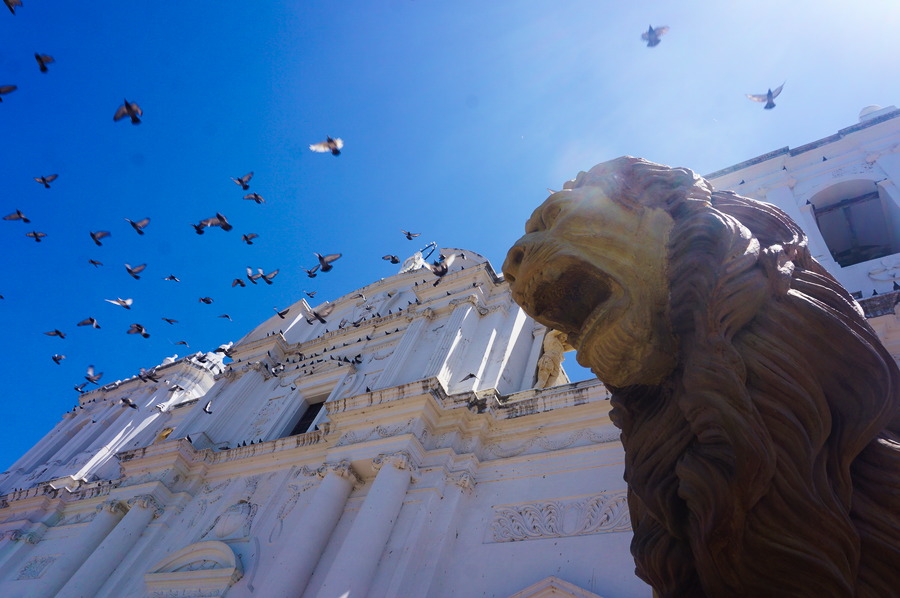 Là aussi ça ressemble plus à un couvent qu’on pourrait trouver en Espagne qu’à une cathédrale latino-américaine. Elle a d’ailleurs été construite, en 1577. sur le modèle de l’Escurial, un grand monastère près de Madrid. Elle se trouve sur la plaza de la Proclamación bordée par un superbe cabildo de couleur jaune. Sa façade principale jaune et rouge est magnifique mais un peu coincée dans une petite ruelle. A notre passage, elle était ouverte pour une messe. Nous nous sommes faufilés dans un groupe d’Américains pour y prendre furtivement une photo même si nous nous sommes assez vite fait grillés!