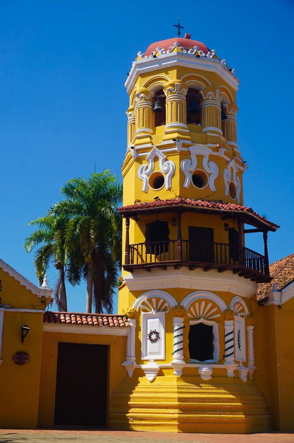 Le couvent de la Popa fut construit entre 1607 et 1612 après que la Vierge ait apparu à un religieux du coin lui ordonnant d’ériger un lieu de culte sur le cerro de la Popa. Il fut la cible de convoitises notamment de la part des pirates car, à cause de sa situation dominant la ville, l’édifice semblait une forteresse qu’il fallait à tout prix aller conquérir. Mais Cartagena ayant un système de défense quasi infaillible, la colline ne fut jamais prise. C’est à l’indépendance que ça se corse. Simón Bolivar, le héros de l’indépendance, en fit son quartier général durant la guerre, ce qui obligea les moines a quitter les lieux. Le bâtiment fut transformé en prison et en arsenal militaire. Ce n’est qu’en 1961 que le couvent alors en état de ruines, fut rétrocédé aux moines Augustins qui le restaurèrent et en firent un petit musée religieux. Il se visite encore aujourd’hui pour 14’000 pesos (3,05€ ou 2,90 CHF).