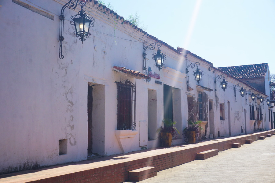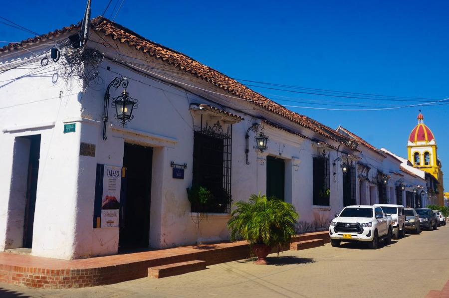 Le centre historique ainsi que tout le système de fortifications sont inscrits sur la liste du patrimoine mondial de l’UNESCO. C’est amplement mérité car c’est juste exceptionnel mais ça attire beaucoup (trop) de monde! En plus, le centre n’est pas du tout piéton. Entre tous les touristes et les voitures qui essaient de passer dans les rues étroites, c’est un peu le bordel. C’est le premier endroit en Colombie, après deux mois de voyage dans le pays, que nous avons vu transformé en « Gringoland » avec ses énormes échoppes de babioles « Made in China », ses restaurants de burgers aseptisés et ses Boutique Hotels. Mais il faut reconnaître que ça en jette! Nous sommes juste un peu étonnés par la hauteur de certains bâtiments. En général, les villes coloniales possèdent de petites maisons de plein pied ou éventuellement avec un deuxième étage. Là, certaines en possèdent trois voire quatre! Nous supposons que c’était un signe de richesse puisque c’était une des villes les plus prospères du royaume. Du coup, la ville ressemble plus à Séville qu’à d’autres villes similaires comme Campeche ou Panama.