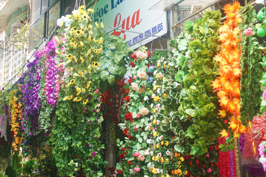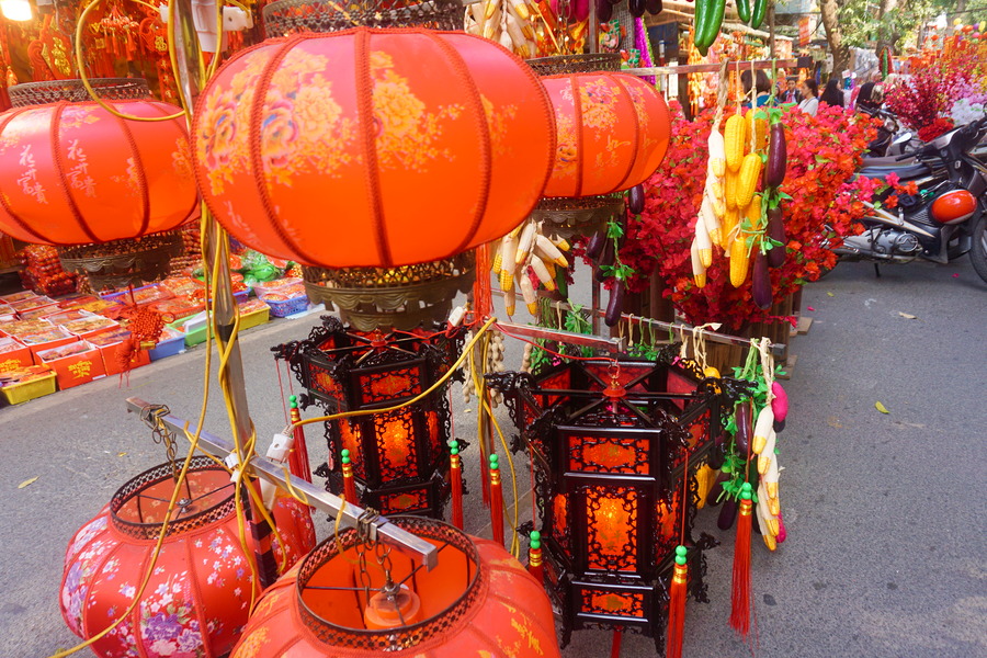 En ce mois de Têt, les ruelles du centre-ville se sont transformées en un gigantesque marché dédié aux festivités du nouvel an vietnamien. Les rues se sont parées de fleurs, de rouge et d’or et la frénésie n’a rien à envier à la période du shopping de Noël en Occident.