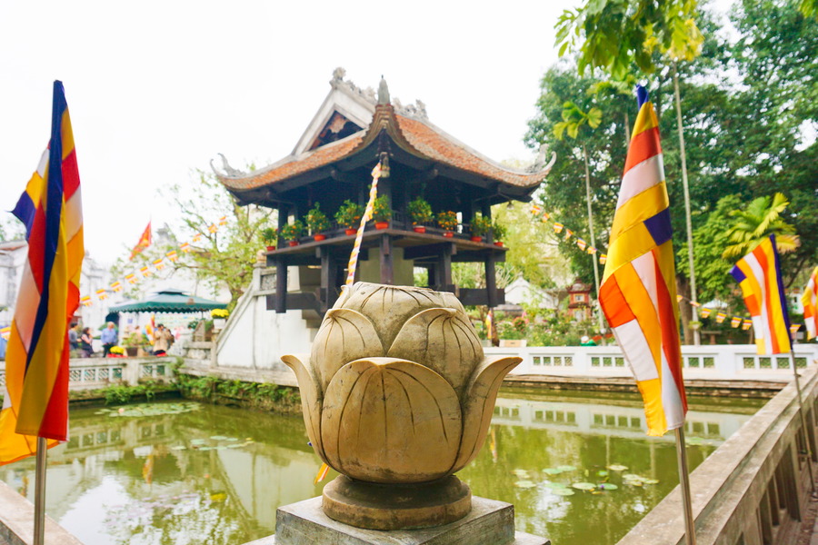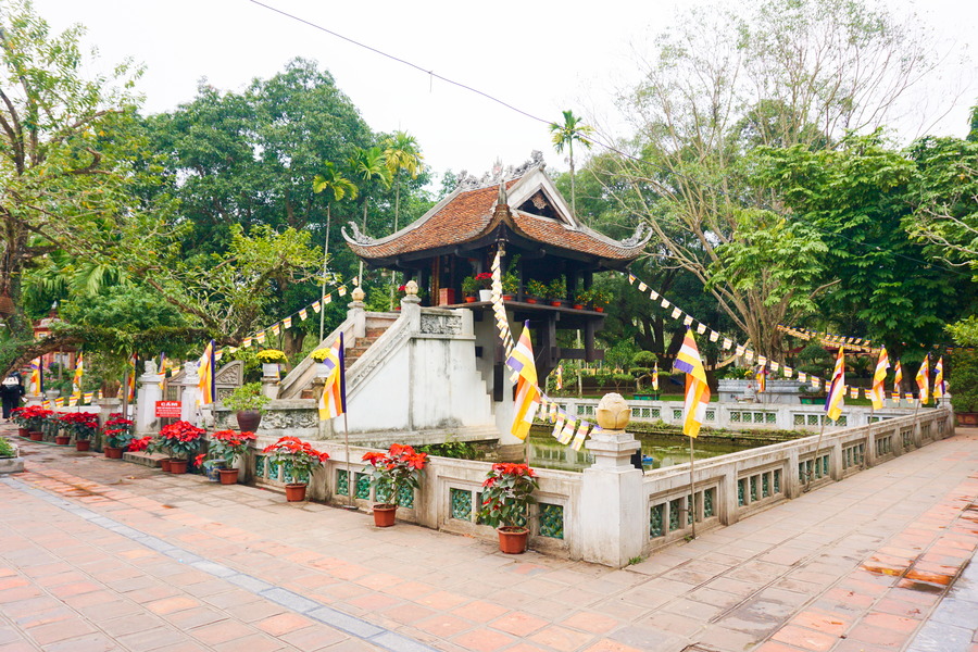 Comme son nom l’indique, c’est une pagode qui repose sur un seul pilier. Elle date du XIe siècle mais les Français la détruisirent complètement. Le gouvernement vietnamien décida de la reconstruire en remplaçant en pilier qui à l’origine était en teck, par du béton.