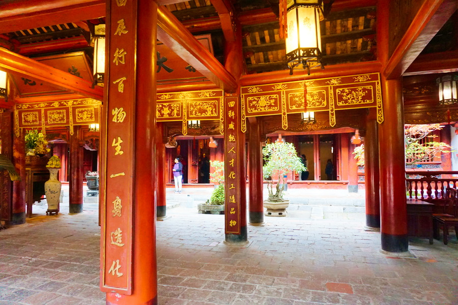 Cette fois, nous changeons du bouddhisme, du catholicisme et du taoïsme pour découvrir le confucianisme, la troisième philosophie chinoise. A l’origine, ce complexe n’avait rien de religieux, il a été construit en 1070 dans le but de fonder une académie confucéenne. Le temple de la Littérature est donc la plus ancienne université du Vietnam. Aujourd’hui, c’est un des temples dédiés à Confucius les plus importants du pays.